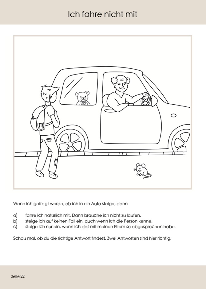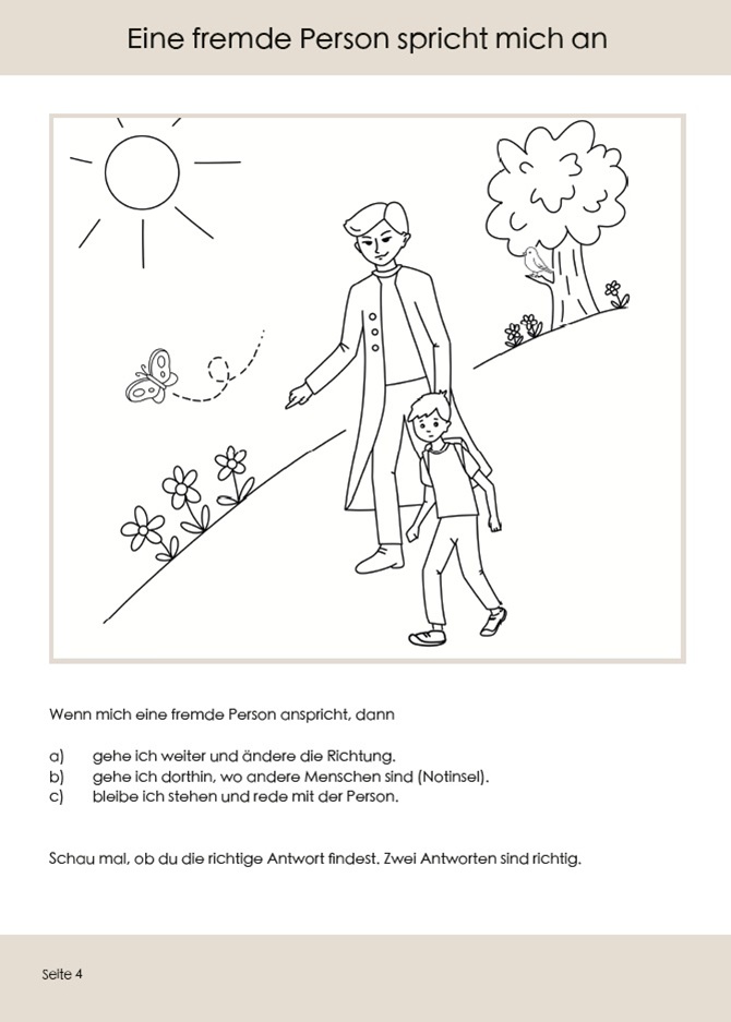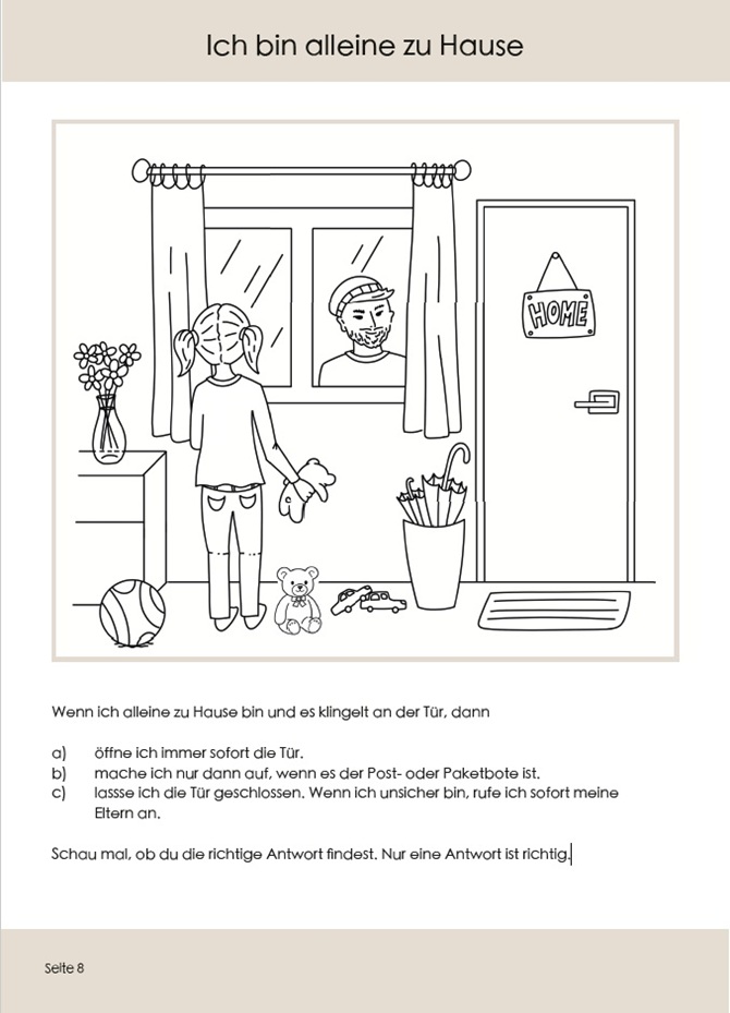 Wir behandeln wichtige Themen wie Sicherheit auf dem Schulweg oder das richtige Verhalten, wenn Kinder alleine zu Hause sind. Ergänzend erhalten die Kinder Aufgabenblätter, um das Gelernte zu vertiefen und auch zu Hause weiterzudenken.